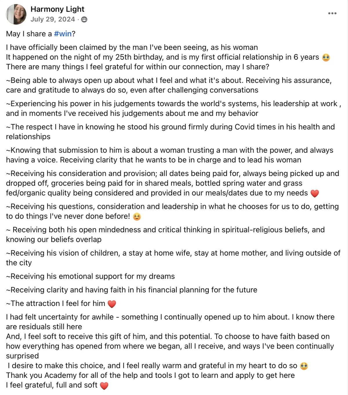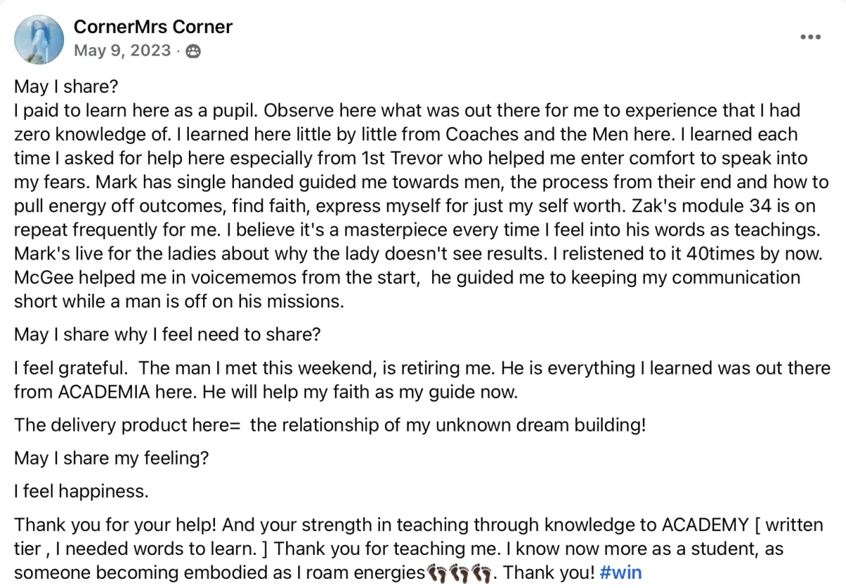 "...Since learning the work, it's been opening up this whole new world for me and made more connection with my man..."