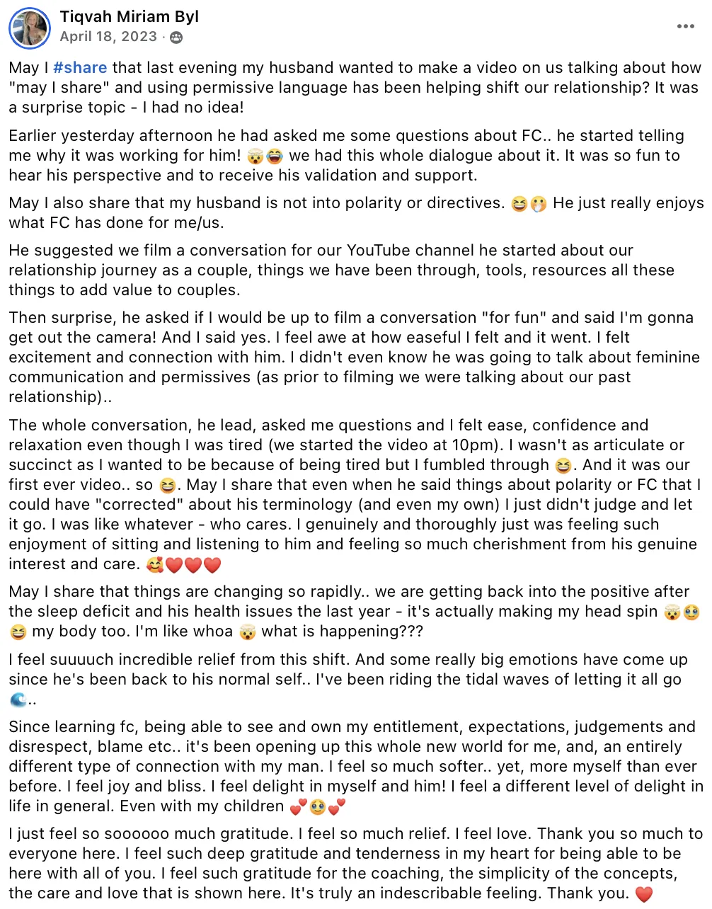 "...I feel so happy and deeply grateful that my husband has started taking the lead for me..."
