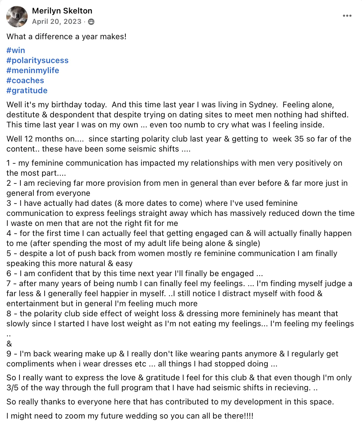 "...My man has started gently guiding me into my feelings and helpingme step away from the stories I get stuck in..."