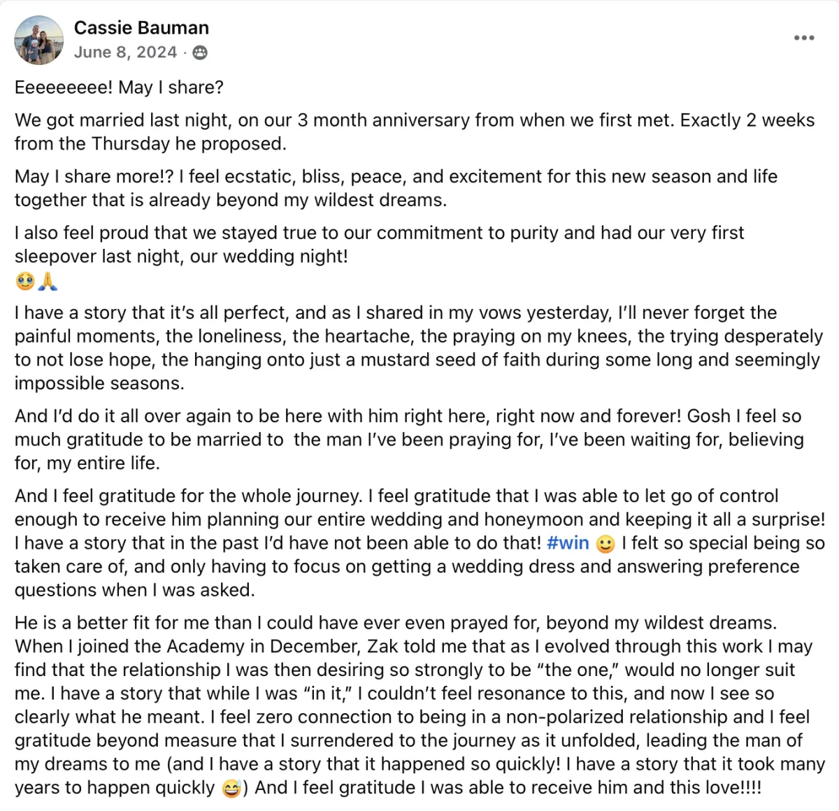 "...We got marriedon our 3-month anniversary from when we first met..."